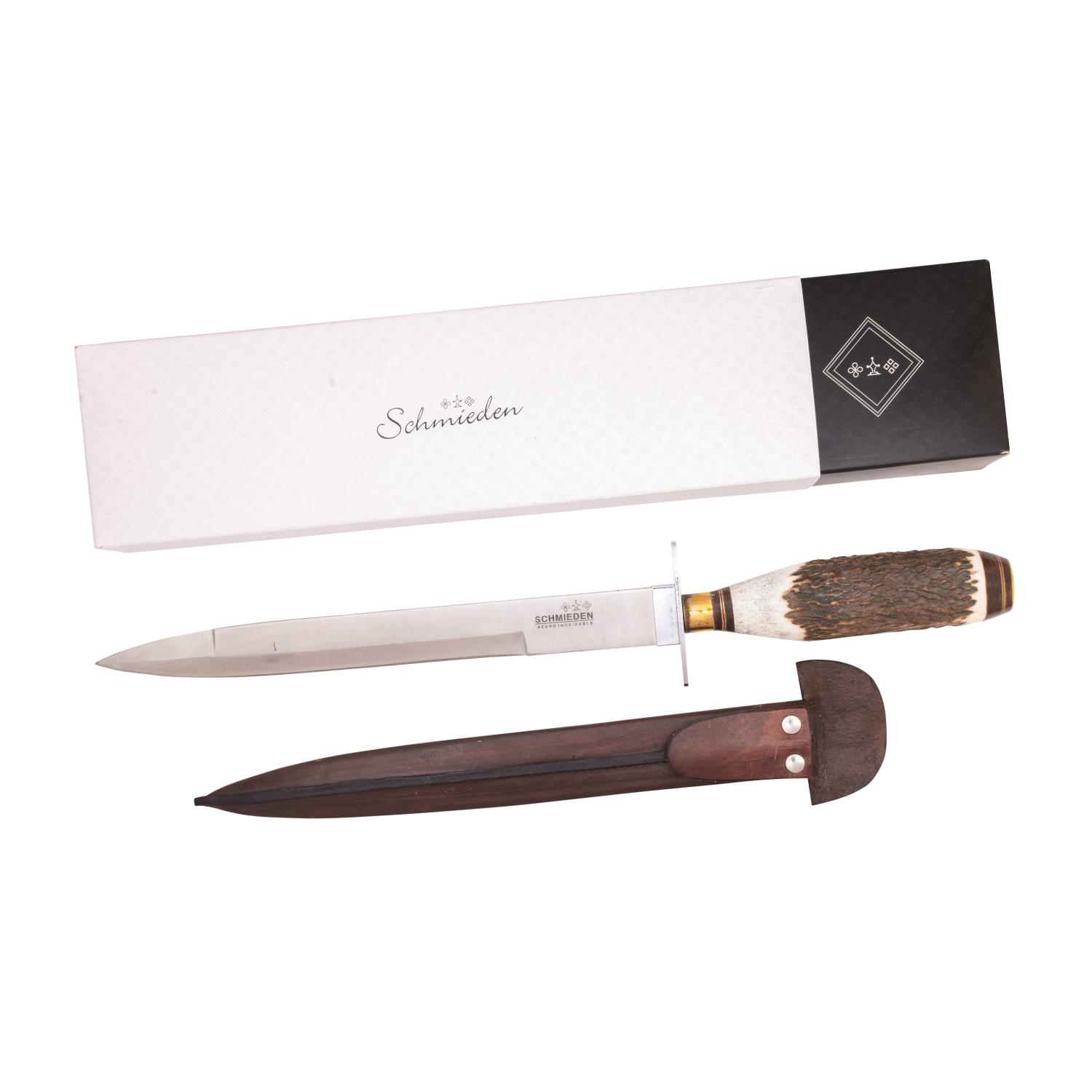 Daga Hoja Acero Inox. Schmieden 30 Cm Encabado En Ciervo Completo y Vaina De Cuero Vaqueta