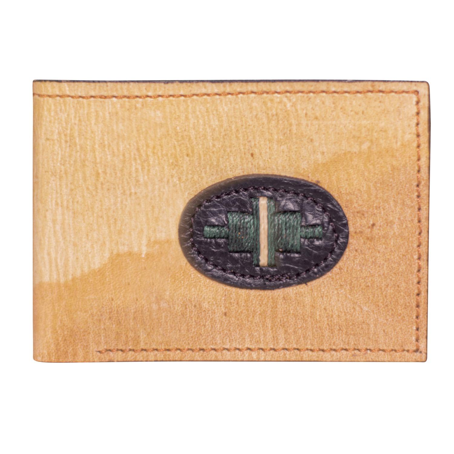 Billetera De Hombre En Cuero Crudo Con Guarda Pampa Bordada