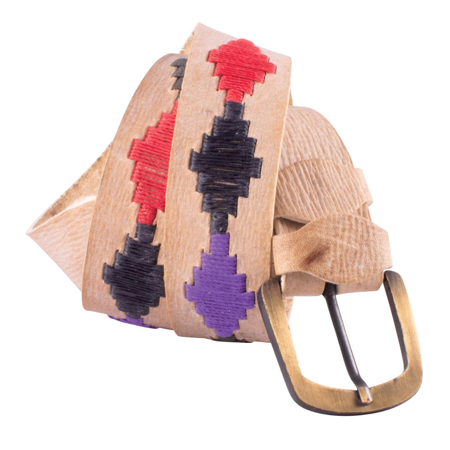 Cinto De Dama De Cuero Crudo Bordado En Puntas Ancho 2,5 Cm (75 Cm Al 90 Cm)