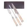 Juego Para Asado Cuchillo,Tenedor y Chaira Acero Inox. 18 Cm Encabados En Maderas, Ciervo o Materiales Varios Con Base De Madera
