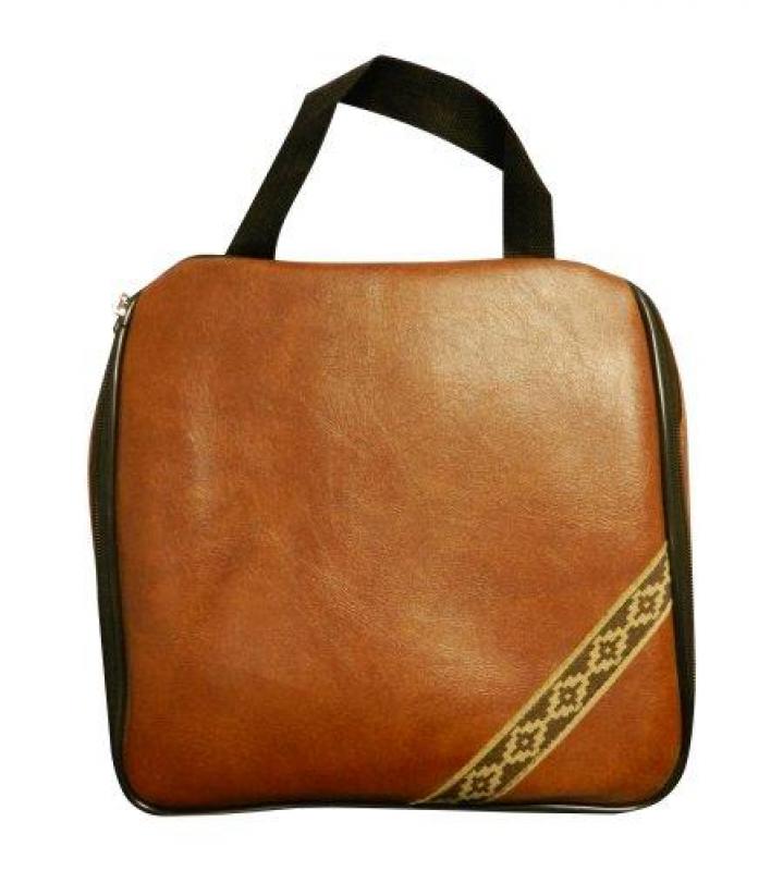Juego De Pic-Nic Para 2 Personas En Símil Cuero y Cierre Con Platos De Madera Vasos De Acero Inox Servilletas y Cubiertos
