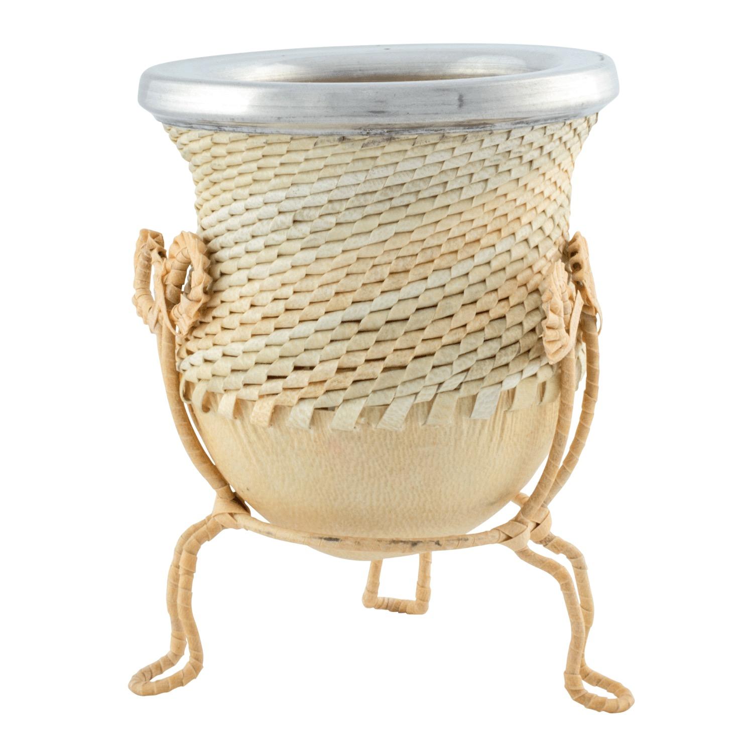 Mate Vuelo Trenzado Con Posa Forrado En Cuero Crudo