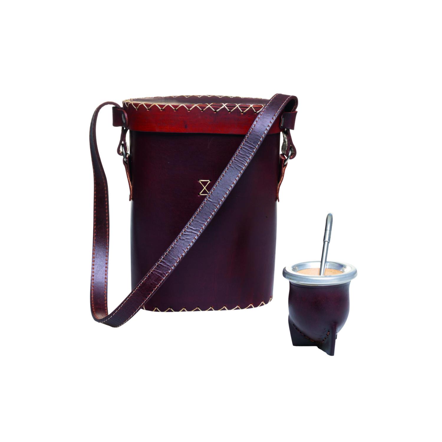 Porta Termo En Cuero Con Mate Y Bombilla Pico Loro
