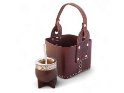 Set De Matera Canasta De Cuero Vaqueta Mas Mate Imperial Virola De Alpaca Y Bombilla Chata De Acero